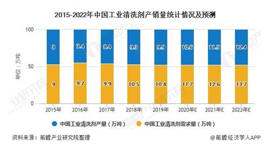 2019年,我國(guó)工業(yè)清洗劑產(chǎn)量在9.9萬(wàn)噸左右,需求量為10.8萬(wàn)噸,預(yù)計(jì)到2022年,我國(guó)工業(yè)清洗劑產(chǎn)量將增長(zhǎng)至12.4萬(wàn)噸。2018年我國(guó)工業(yè)清洗劑市場(chǎng)規(guī)模為38.0億元,2019年我國(guó)工業(yè)清洗劑市場(chǎng)規(guī)模增長(zhǎng)至39.4億元。隨著中國(guó)制造產(chǎn)業(yè)升級(jí)的逐步實(shí)施以及中國(guó)本土企業(yè)在中高端制造業(yè)不斷取得突破,中國(guó)工業(yè)清洗劑市場(chǎng)還將取得穩(wěn)步發(fā)展。